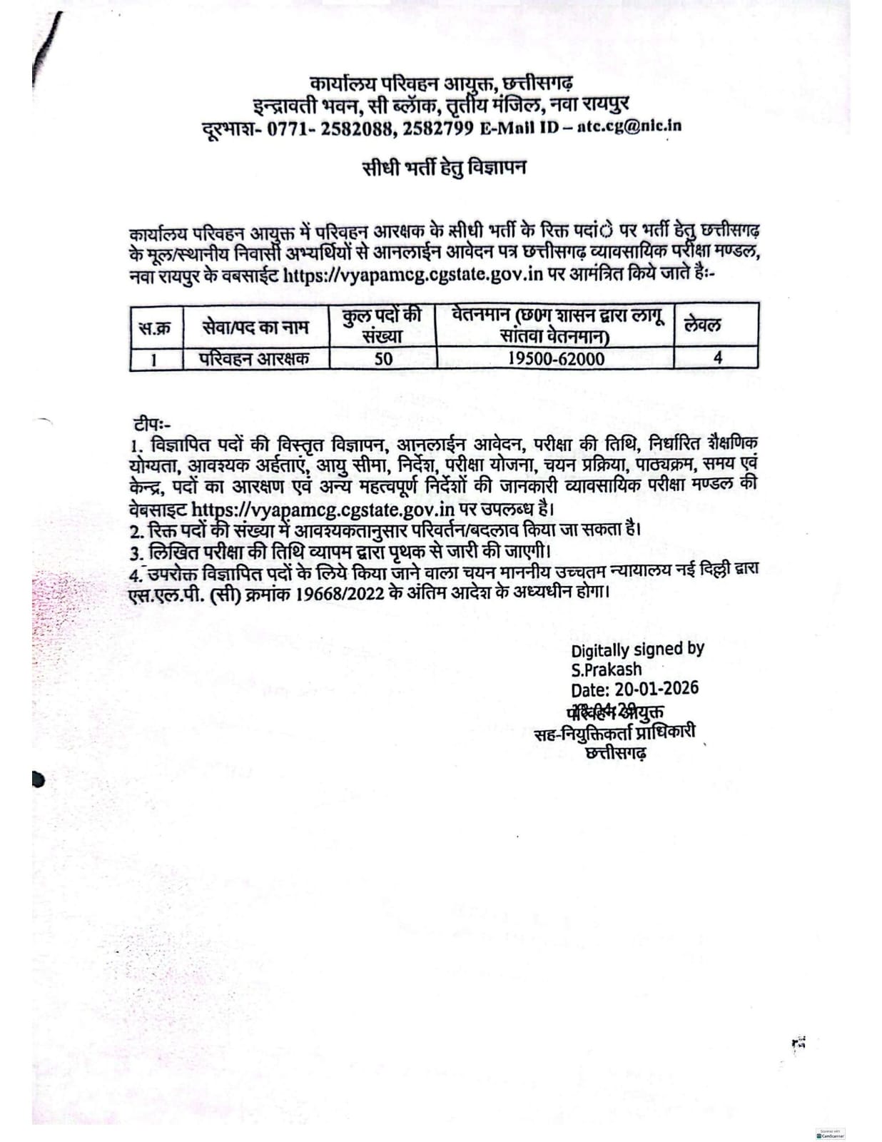 Step 1 सबसे पहले CG Vyapam की official website पर जाकर Transport Constable Bharti 2026 का notification चेक करें।