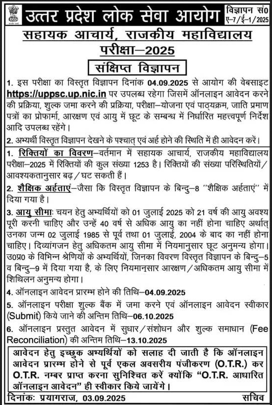 #UPPSC #AssistantProfessor #UPPSCRecruitment2025 #UPJobAlert #TeachingJobs #SarkariNaukri #GovtJobs2025 #EducationJobs #UPPSCExam #AssistantProfessorVacancy #UPPSCNotification #UPCareer #UPGovtJobs #ApplyOnline #LatestVacancy #JobAlert #TeachingCareer #UPPSCUpdate #NaukriNews #Recruitment2025